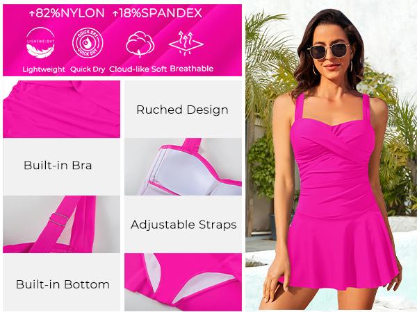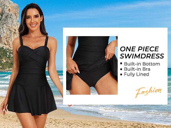 - Swim Dresses for Women Tummy Control:This fully lined swimsuit with ruched on the stomach area offers excellent tummy control.
