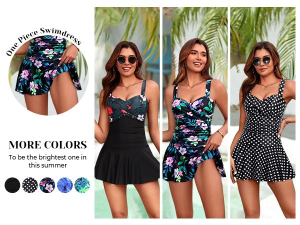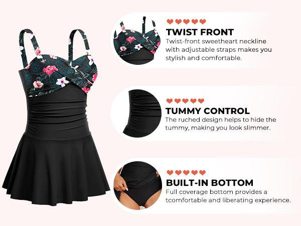 - One Piece Bathing Suit with Skirt:This swimdress swimsuit features sweetheart neckline, twist front, shirred sides,and built-in bottom, ensuring your comfort and a slimming effect.
