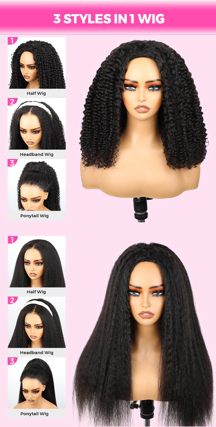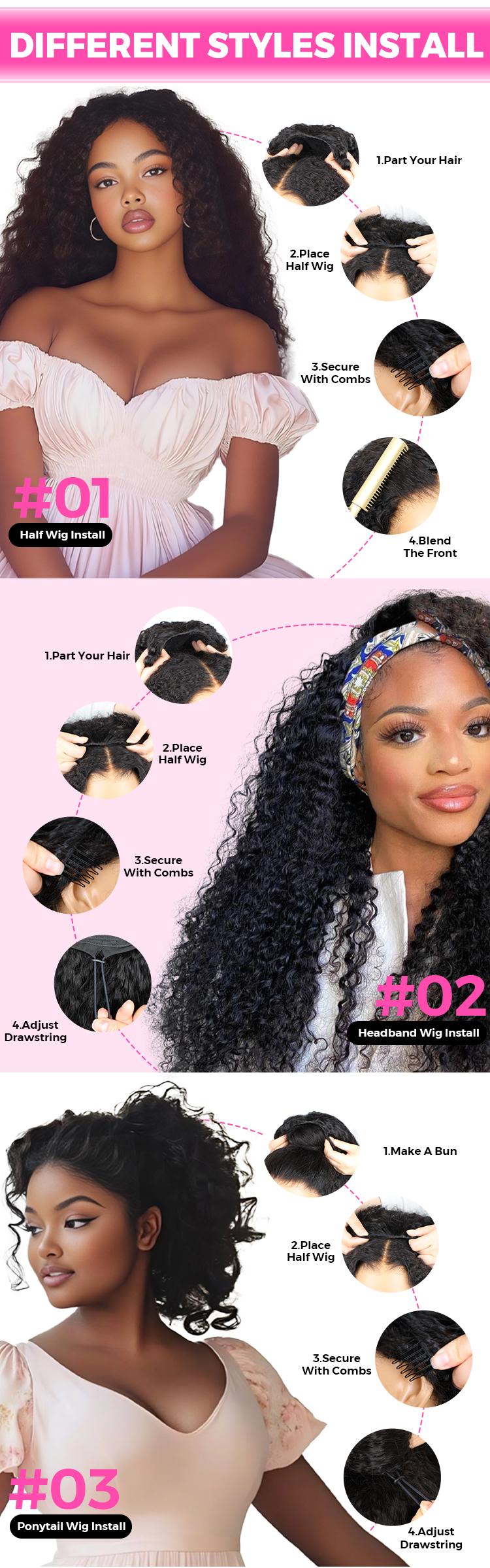[HALF Wig]Curlyme Invisible Hairline Kinky Straight & Afro Kinky Curly Glueless